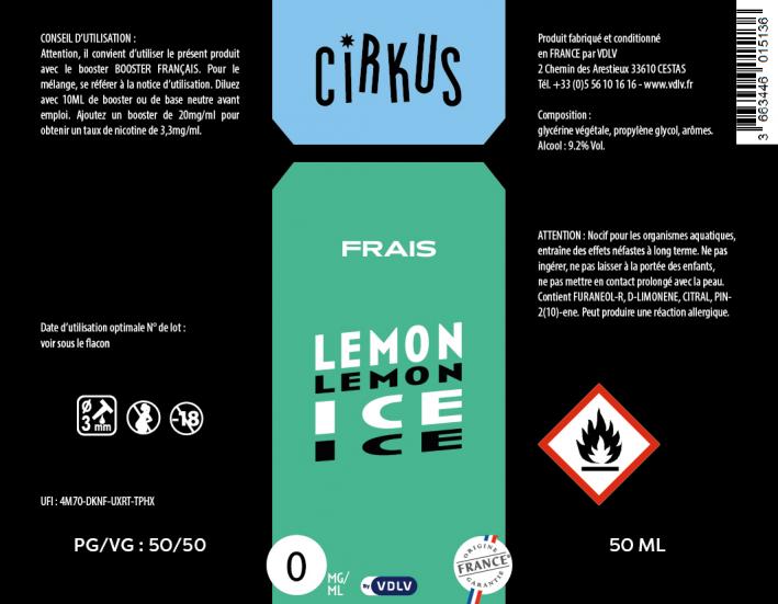 Les e-liquides 50ml Cirkus sont sans nicotine, boostés en arômes et conditionnés en flacons de 70ml pour que vous puissiez venir les compléter avec un Booster Français afin d'obtenir un taux de nicotine de 3,33mg/ml en grand format.