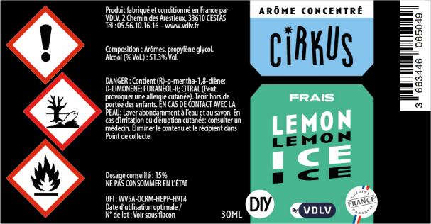 L'arôme concentré Lemon Ice de Cirkus est un mélange DIY frais. Il délivre un mix de citrons gourmands associé à une pointe de menthe pour une note de fraîcheur subtile. Idéal pour vos créations d'e-liquides acidulés et vivifiants. Flacon de 30 ml.