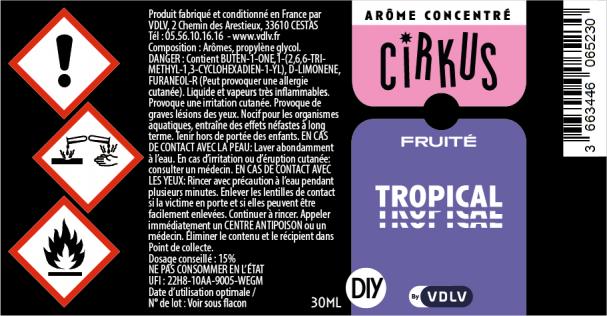 L'arôme concentré Tropical est une création fruitée intense pour vos mélanges DIY. C'est l'union entre la mangue charnue et la passion acidulée pour une vape aux accents exotiques. Flacon de 30 ml.