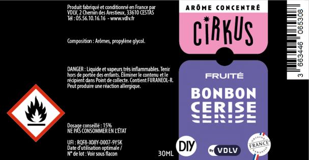 L’arôme concentré Bonbon Cerise de Cirkus a été développé pour reproduire les caractéristiques gustatives des douceurs d'antan. Cette recette repose sur un arôme de cerise mûre, travaillé pour offrir une rondeur en bouche typique des bonbons gélifiés ou acidulés.