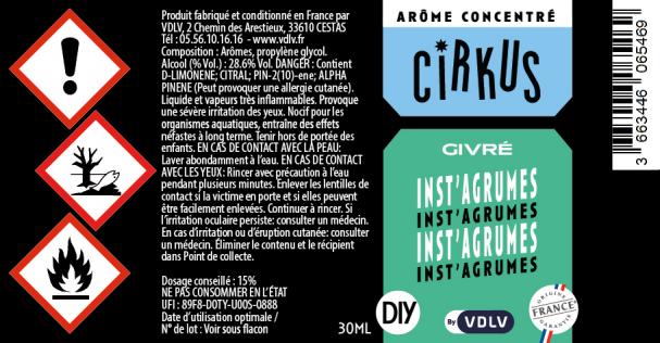L'arôme concentré Inst'Agrumes de Cirkus est un cocktail de caractère associant la douceur de l'orange, la vivacité du citron et l'amertume du pamplemousse. Rehaussé d'une fraîcheur givrée, ce mélange est proposé en flacon de 30 ml.