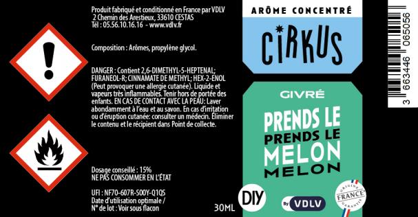 L’arôme concentré Prends le Melon de Cirkus repose sur un melon mûr offrant une sensation de fraîcheur naturelle et des notes de fruits rouges apportant une vivacité et une pointe d'acidité qui viennent souligner le caractère du melon sans l'occulter.