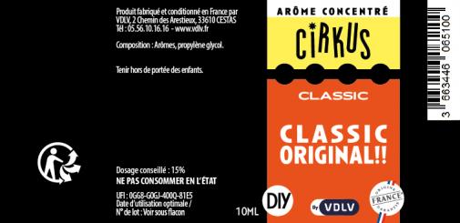 L'arôme concentré "Classic Original" de la gamme Cirkus est classé dans la famille des saveurs classic. Il délivre un profil aromatique de classic blond légèrement boisé avec des notes grillées, offrant un rendu sec et équilibré.