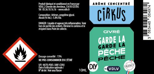 L'arôme concentré "Garde la Pêche" de la gamme Cirkus est classé dans la famille des saveurs grivrées. Il délivre la douceur d'une pêche juteuse alliée à la fraîcheur polaire, offrant un contraste saisissant entre la rondeur sucrée du fruit et une sensation de froid intense.