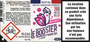 Le Booster Français sucrant Neosweet (20mg/ml), disponible en PG50/VG50 est une solution 2-en-1 intégrant une nicotine 100% française et un agent sucrant de nouvelle génération. Le Néotame garantit une stabilité thermique optimale.