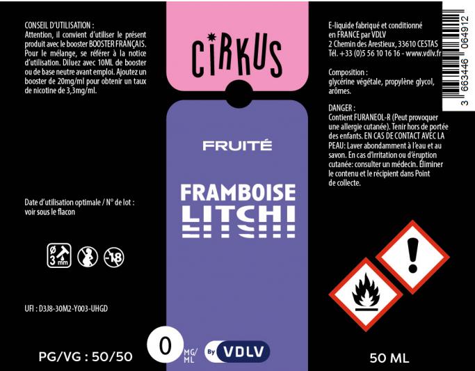 E-liquide pour cigarette électronique, de la marque Cirkus disponible en 50ml, PAB non nicotiné et un taux de PG/VG de 50/50. Cette saveur est également disponible en 10ml en 0, 3, 6, 9, 12 et 16 mg/ml de nicotine.