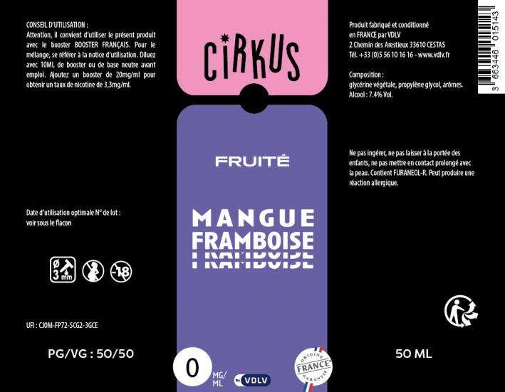 Les e-liquides 50ml Cirkus sont sans nicotine, boostés en arômes et conditionnés en flacons de 70ml pour que vous puissiez venir les compléter avec un Booster Français afin d'obtenir un taux de nicotine de 3,33mg/ml en grand format.